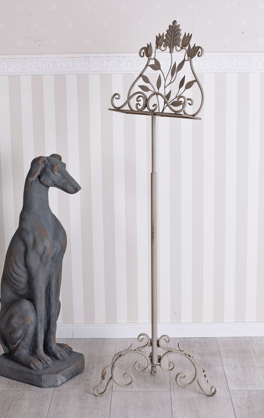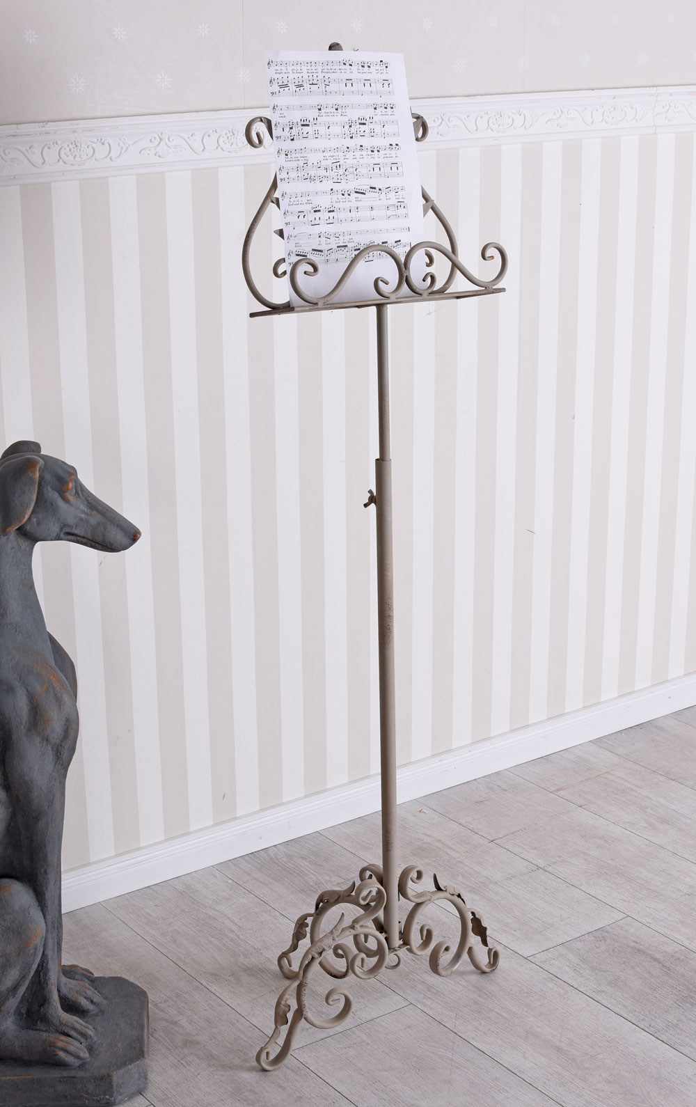 Dekorativer Notenständer aus Metall im nostalgischen Antikstil. Höhenverstellbar, patiniert und vielseitig einsetzbar – ideal für Noten, Kochbücher oder Magazine. Höhe ca. 144 cm, Breite 42 cm, Tiefe 30 cm.