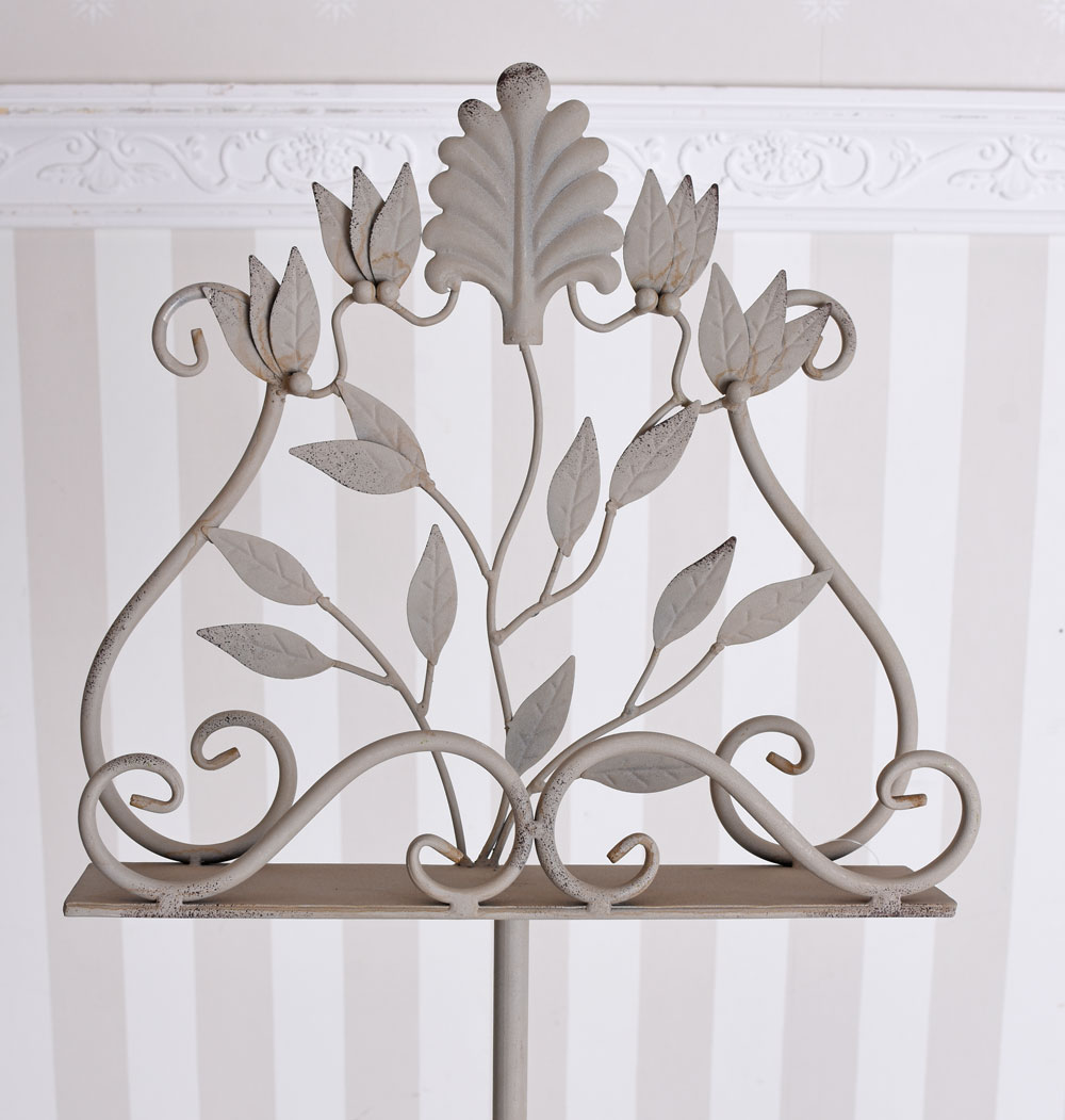 Durch seine dekorative Wirkung eignet sich der Notenständer nicht nur für Musiker, sondern auch als vielseitiges Präsentationsdisplay: perfekt für Kochbücher in der Küche, Zeitschriften im Wohnzimmer oder kleine Bilder im Atelier. Die patinierte Metallstruktur verleiht jedem Raum einen Hauch Vintage-Charme und fügt sich harmonisch in Shabby Chic, Landhaus-, Industrial- und traditionelle Einrichtungsstile ein.