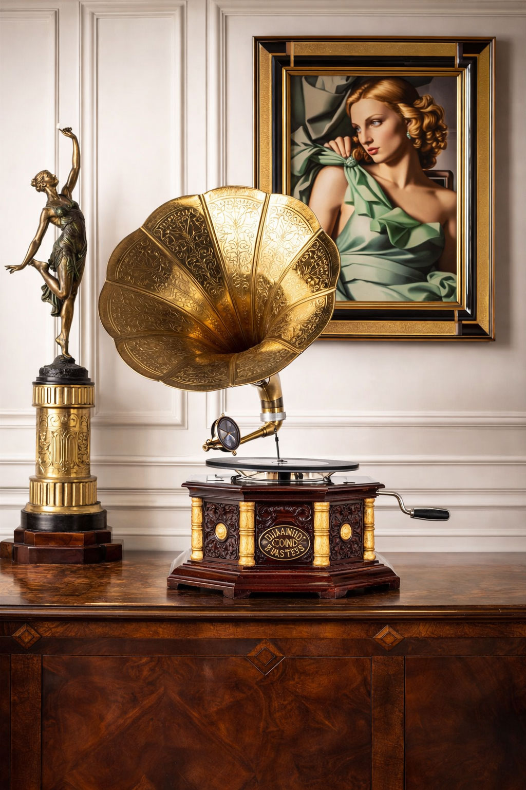 Verwandeln Sie Ihr Zuhause in einen eleganten Salon der 1920er mit dem Trichtergrammophon „Villa Art Deco“.