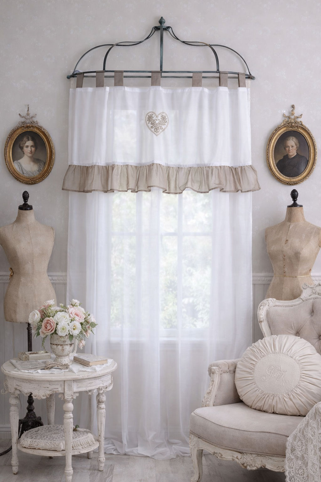 Der Schlaufenschal „Maison Blanche“ ist ein romantischer Vorhang im klassischen französischen Landhausstil, der jedem Raum eine zarte, elegante Note verleiht.