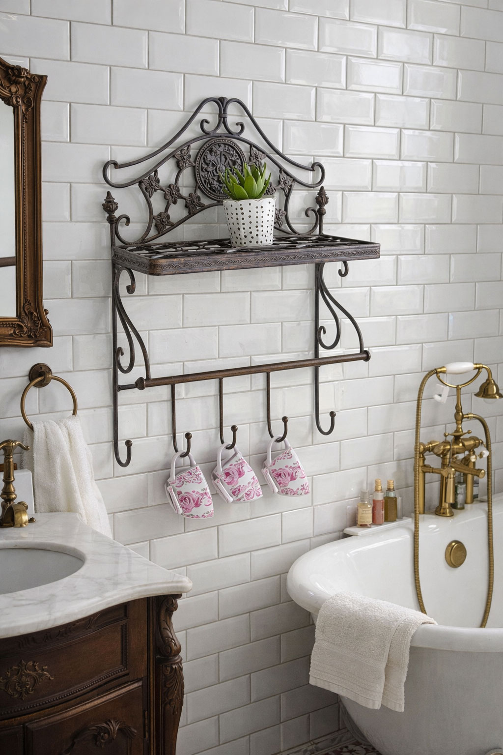 Wandregal im Antik-Look – „Villa Leonard“ vereint nostalgische Ästhetik mit praktischer Funktion für Küche, Bad oder Flur. Höhe ca. 57 cm / Breite ca. 40 cm / Tiefe ca. 15 cm Ohne Dekoration