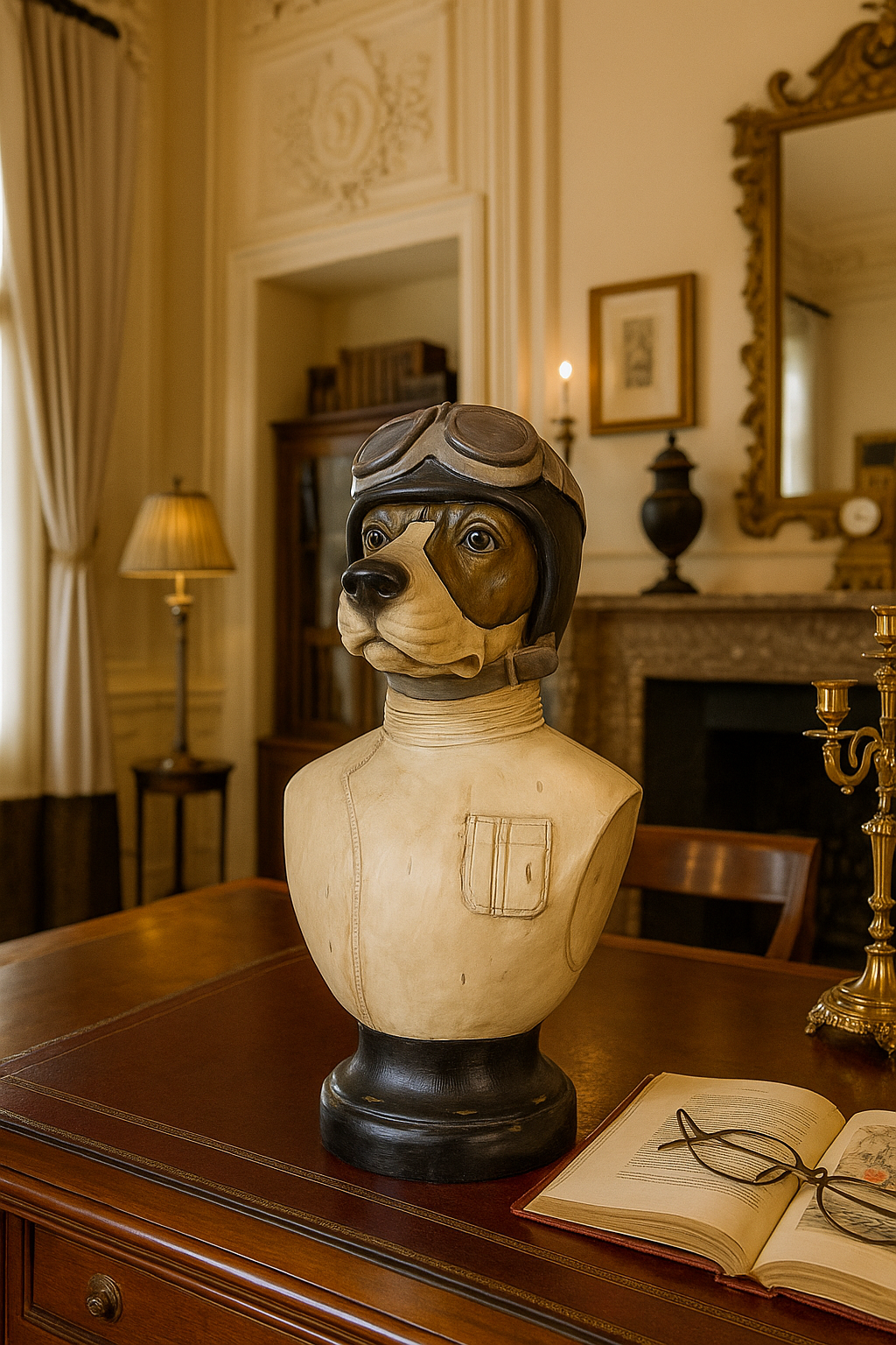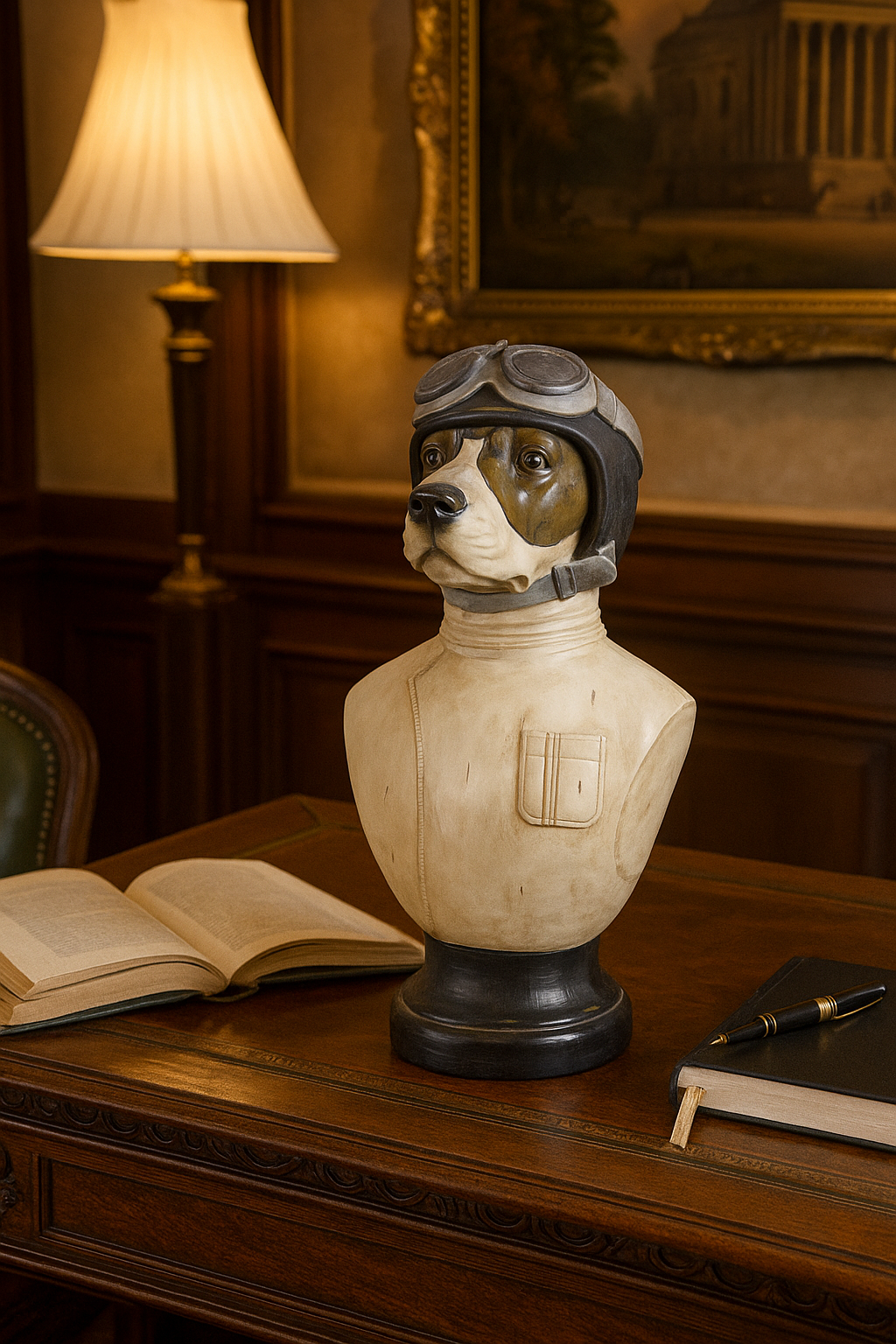 Mit einer Höhe von ca. 50 cm, einem Sockeldurchmesser von ca. 17 cm und einer Breite von 26 cm ist diese Tierbüste ein stilvolles Highlight für jede klassische oder Vintage-inspirierte Einrichtung.