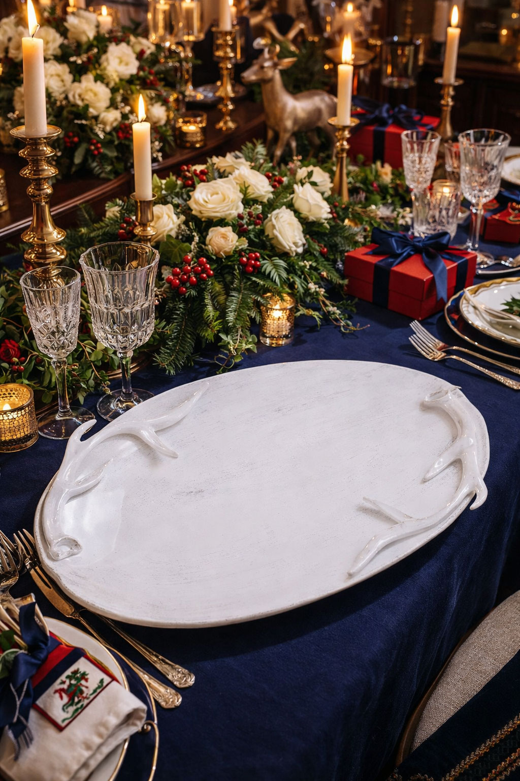 Die kunstvolle Geweih-Dekoration verleiht dem Design eine edle, traditionsreiche Note und erinnert an historische Tafelkultur in herrschaftlichen Jagdschlössern.
