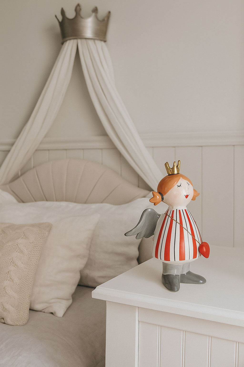 Ob auf dem Nachttisch, in der Vitrine, im Kinderzimmer oder im Wohnzimmer – dieser charmante Schutzengel fügt sich perfekt in jeden Einrichtungsstil ein und wird mit seiner anmutigen Ausstrahlung zum stilvollen Blickfang.